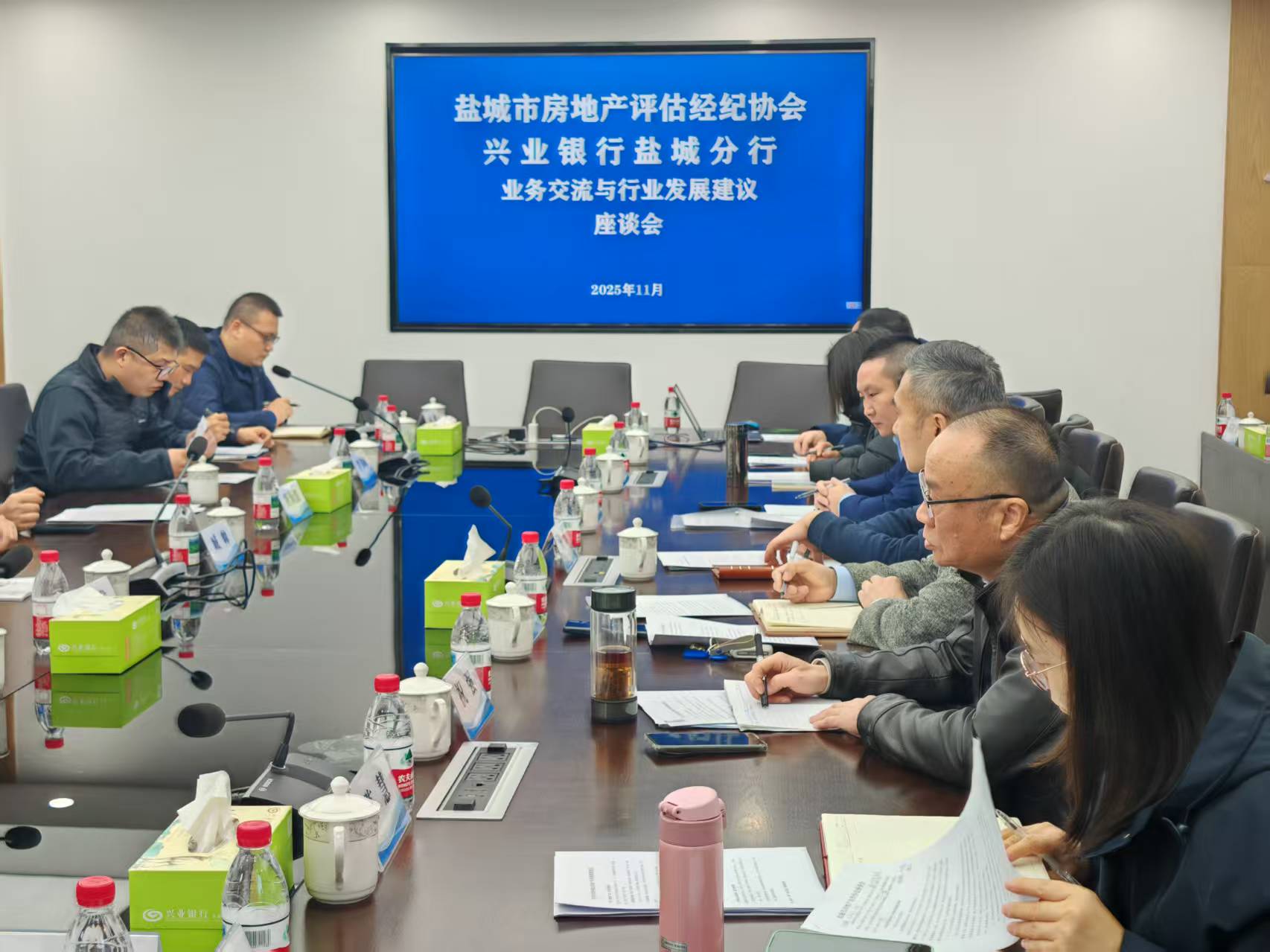 2025年11月22日,盐城市房地产评估与经纪人行业协会联合兴业银行盐城分行在兴业大厦六楼会议室如期召开业务交流与行业发展建议主题座谈会。25名单位代表参加了本次座谈会,会议由协会副会长杨建同志主持。